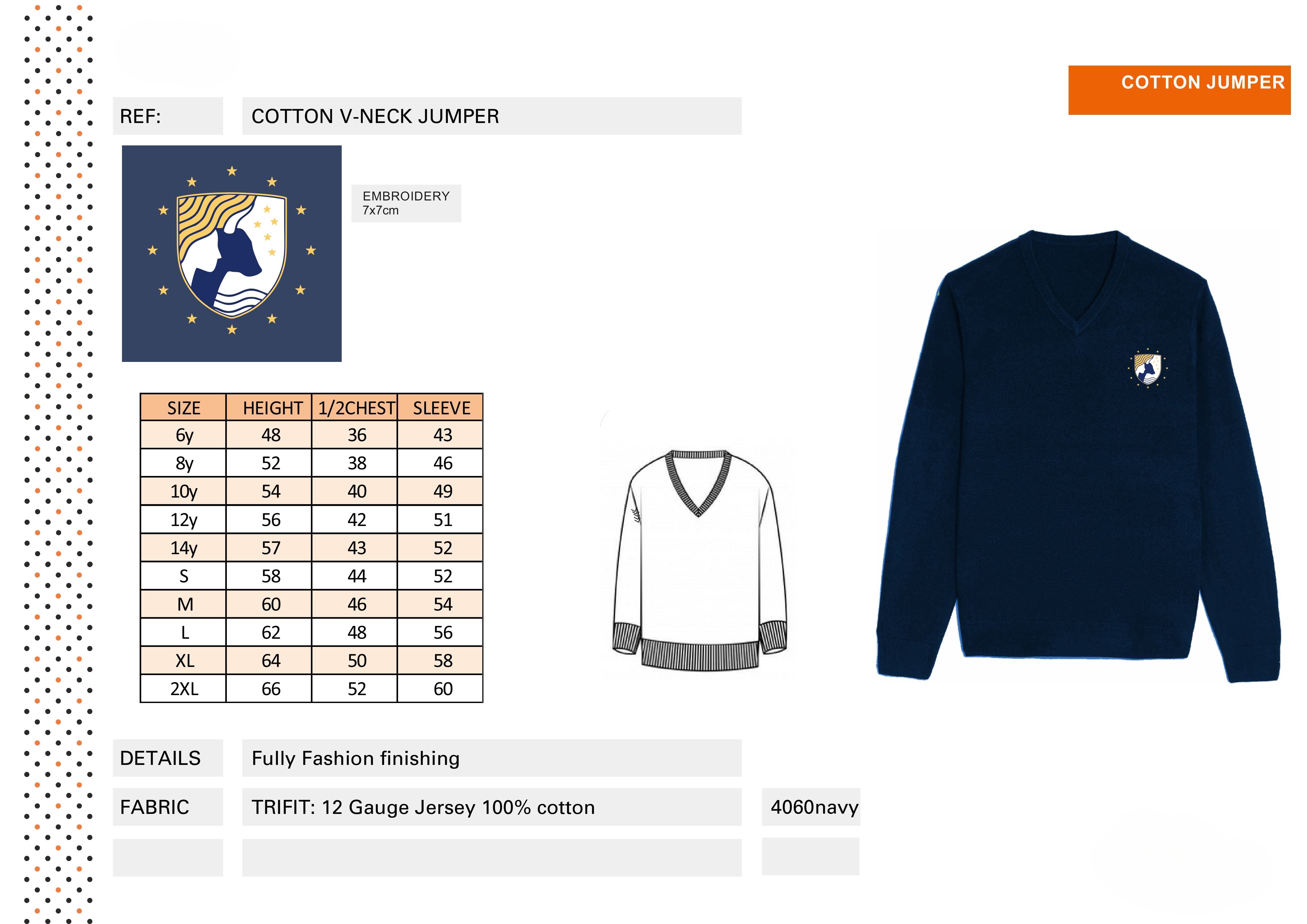 Marineblauwe trui van 100% katoen met borduursel op de linkerborst